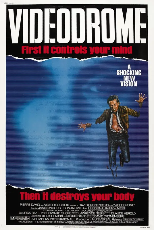 When Max Renn (James Woods) is searching for sleazy programs for a cable television channel, he stumbles upon the show Videodrome, in which people are tortured and killed on camera. Max becomes obsessed, and as he continues his investigation, it turns out that Videodrome is controlling and manipulating his brain to such an extent that Max gradually transforms into a human video recorder: a fusion of man and machine, of hardware and software. Shortly: video kills our free will.